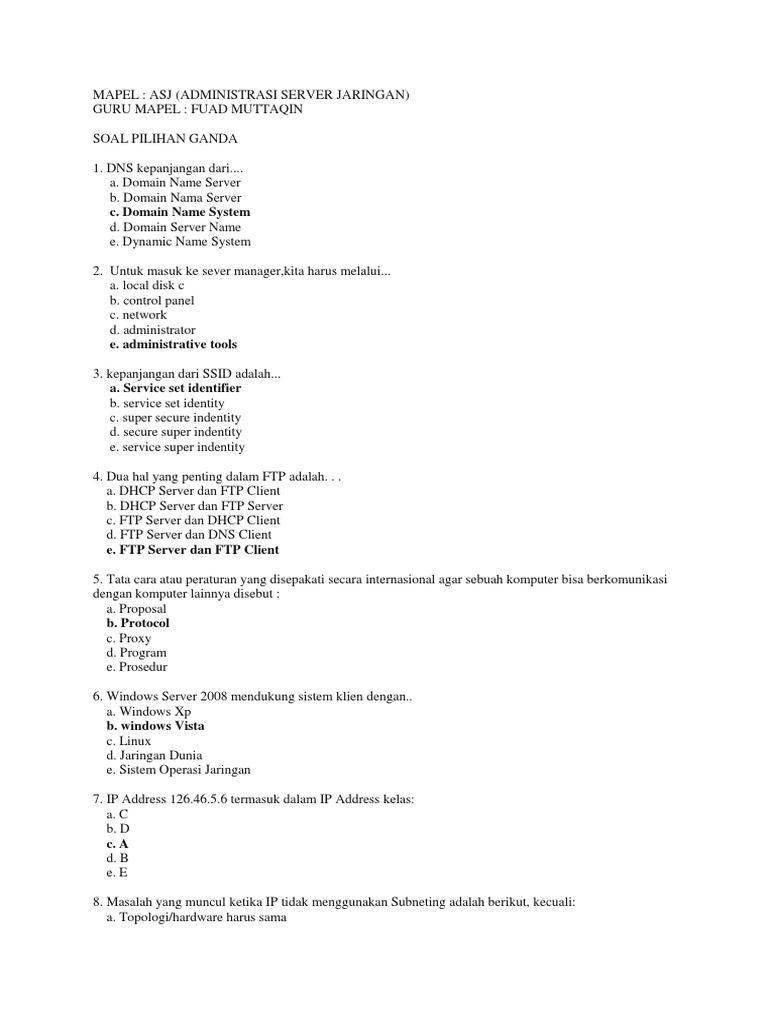 Soal Asj Doc Soal Soal Asj Beserta Jawabannya Assalamualaikum Wr Wb Disini Saya Waws Akan Ngeshare Soal Soal Administrasi Server Dan Jaringan 1 Course Hero