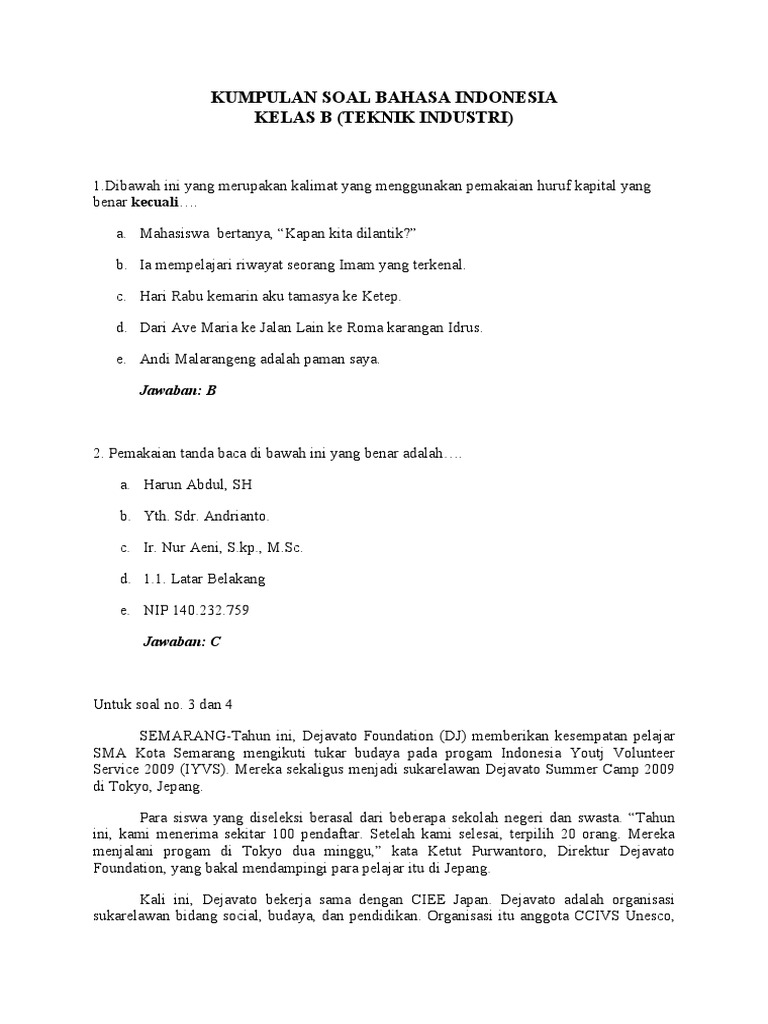 Kumpulan Soal Bahasa Indonesia Mahasiswa