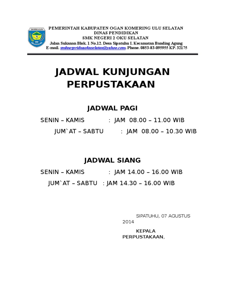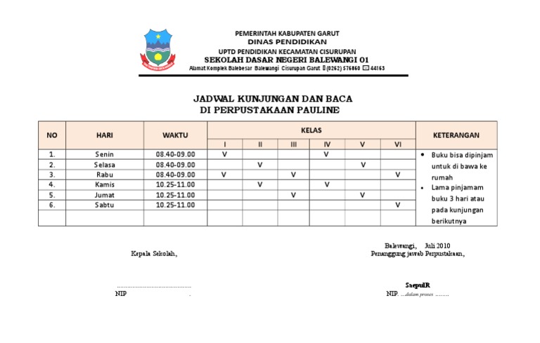 Contoh Jadwal Kunjungan Perpustakaan Revisi Sekolah Cute766