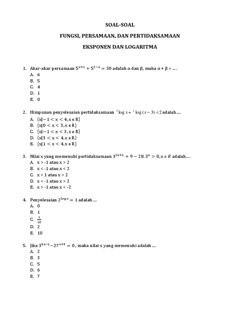 Soal Persamaan Eksponen Kelas 10 Doc Download File Guru