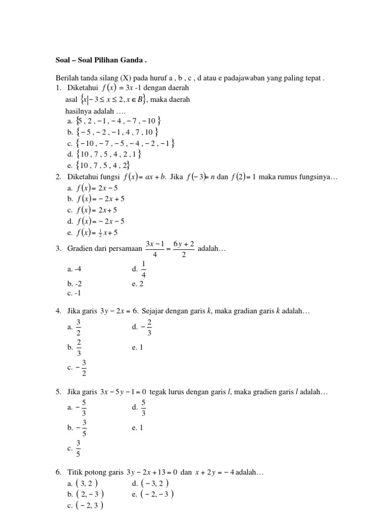 2 Contoh Soal Latihan Matematika Relasi Dan Fungsi Kelas 8 Smp Docx