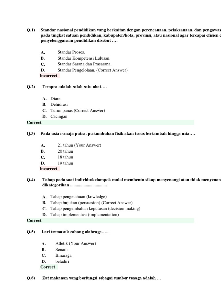 Soal Ukg Penjas Dan Kunci Jawabannya