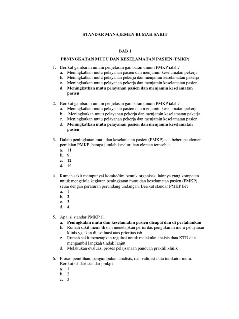 Kumpulan Soal Soal Manajemen Dan Administrasi Rumah Sakit