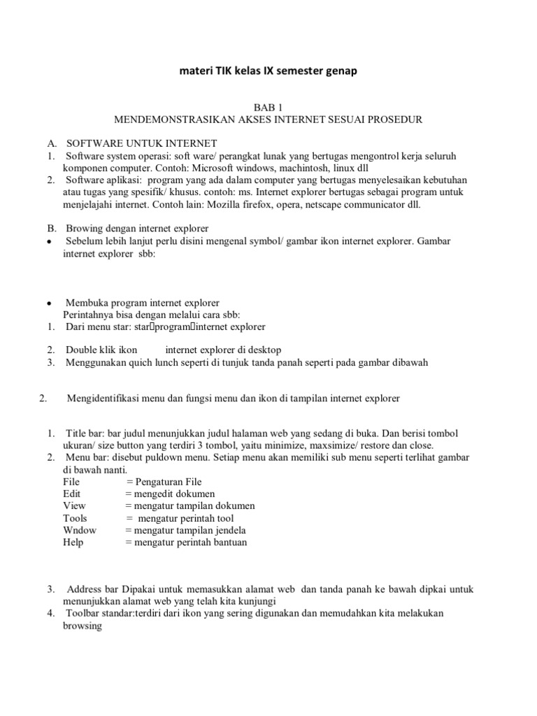Materi Pembelajaran TIK SMP Kelas 9 Semester 1 Selasa Agustus 04 2015 TIK Kelas 9 Semester 1 No comments. Rangkuman Materi Prakarya Kelas 9 Semester 1. Perangkat Untuk Mengakses Internet.