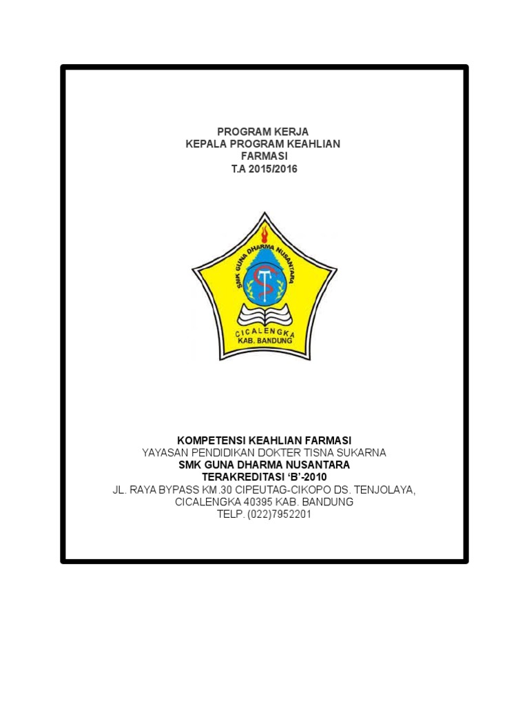 Program kerja kaprog smk farmasi. Meningkatkan mutu lulusan c. BAB II PROGRAM KERJA KAPROG NKPI SMK.