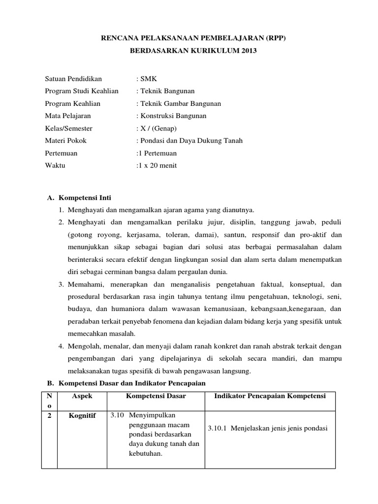 Contoh Rpp Kurikulum 2013 Smk Teknik Bangunan Temukan Contoh Cute766