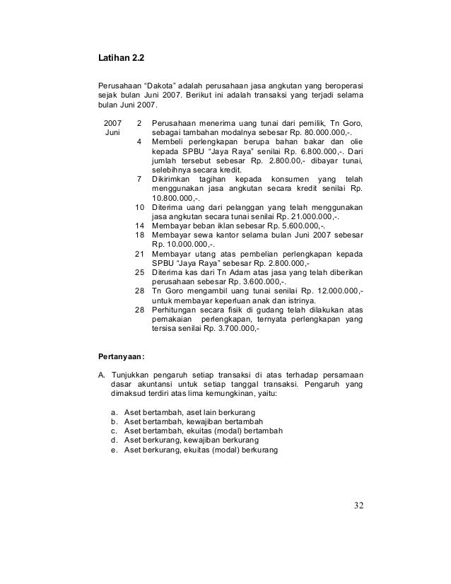 Jawaban soal soal latihan bab 2 akuntansi dasar jilid 1 kisi kisi dan kumpulan soal tes cpns 2019 lengkap dengan kunci jawaban bisa. Dibawah ini adalah transaksi yang terjadi dari Salon Sarikit milik Fitri Adelina selama bulan Januari 2007 a. Kunci jawaban buku paket bahasa inggris kelas 11 semester 2 revisi.